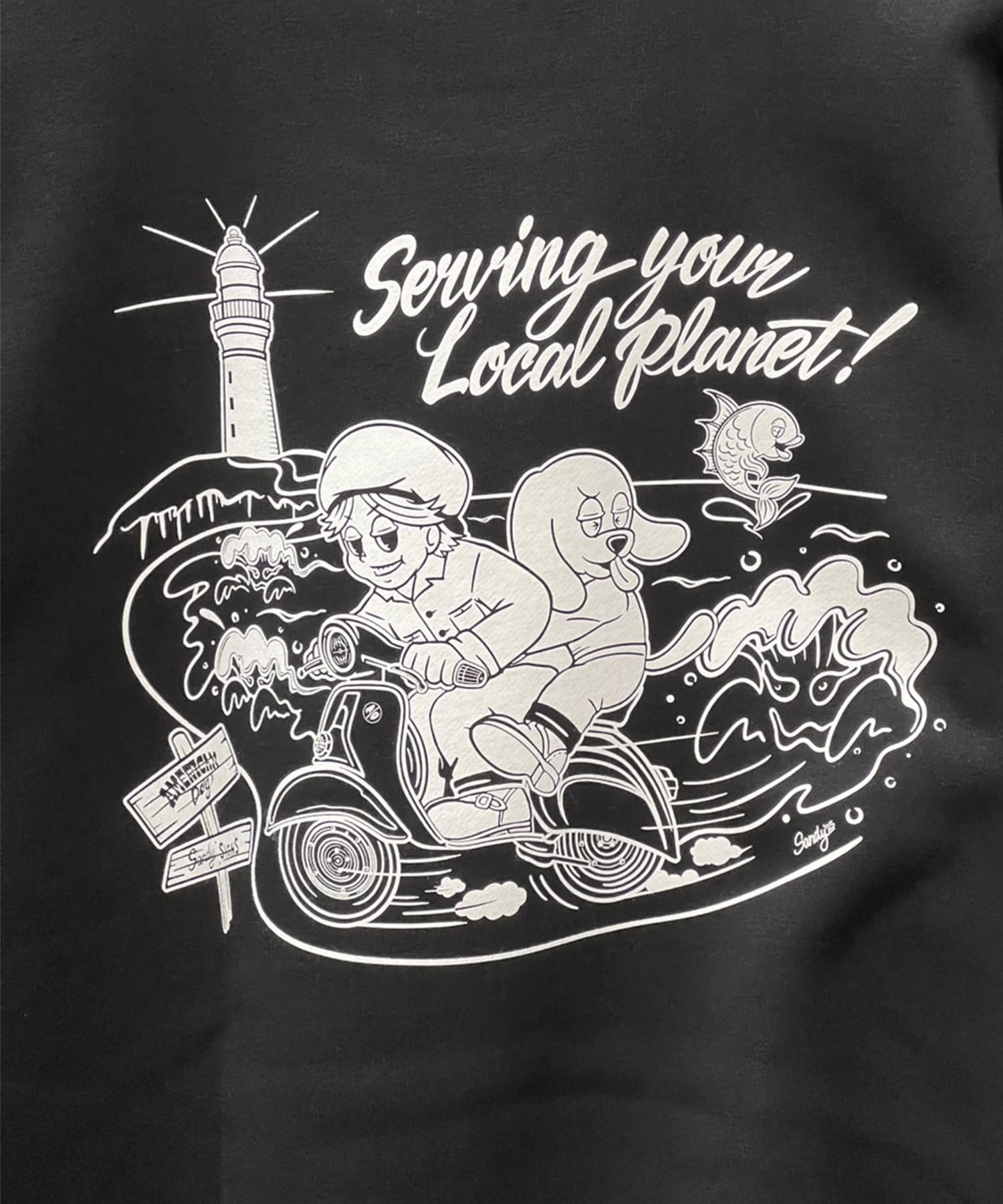 バックプリントには、千葉・犬吠埼灯台を目指す2人。
